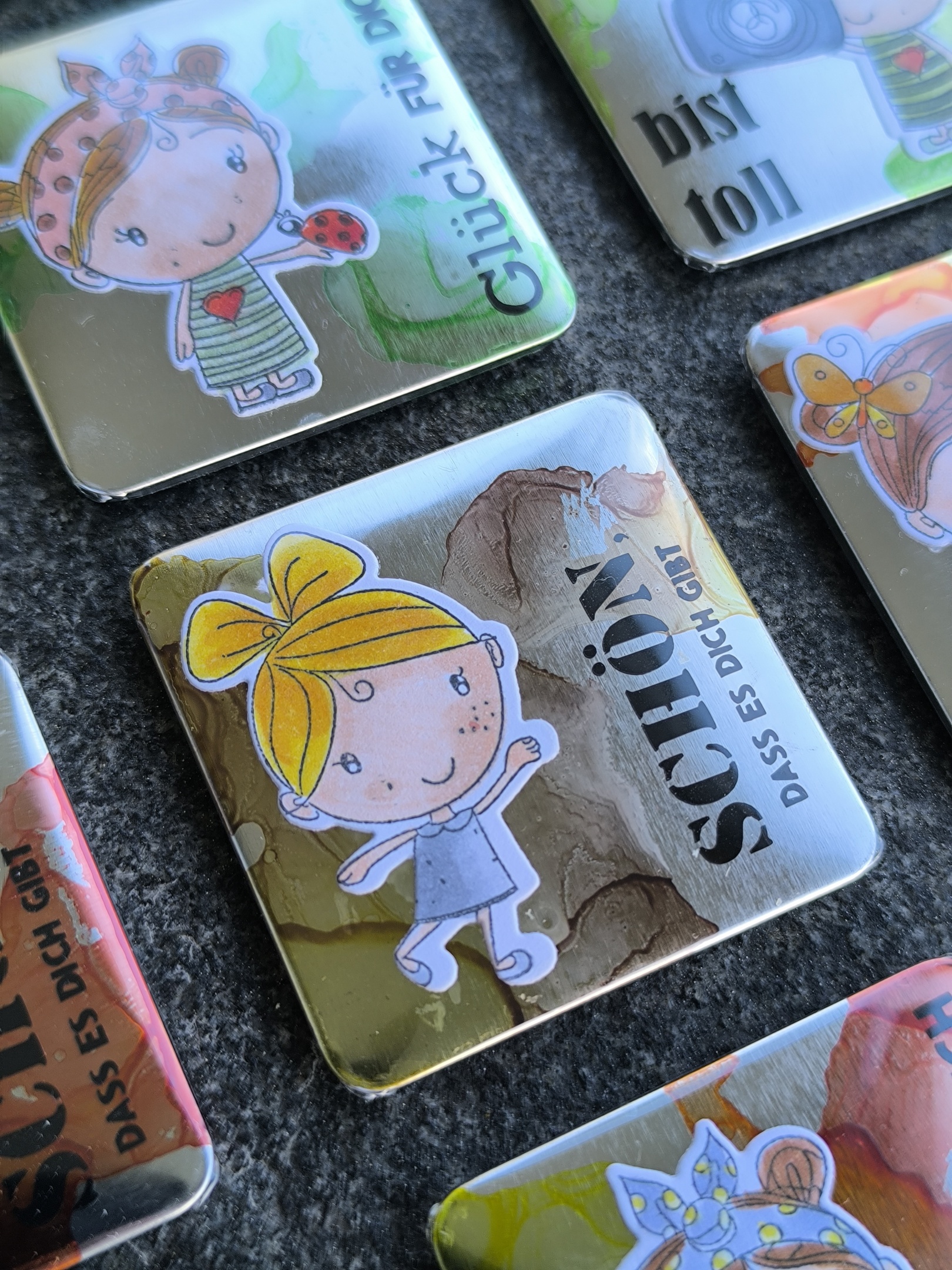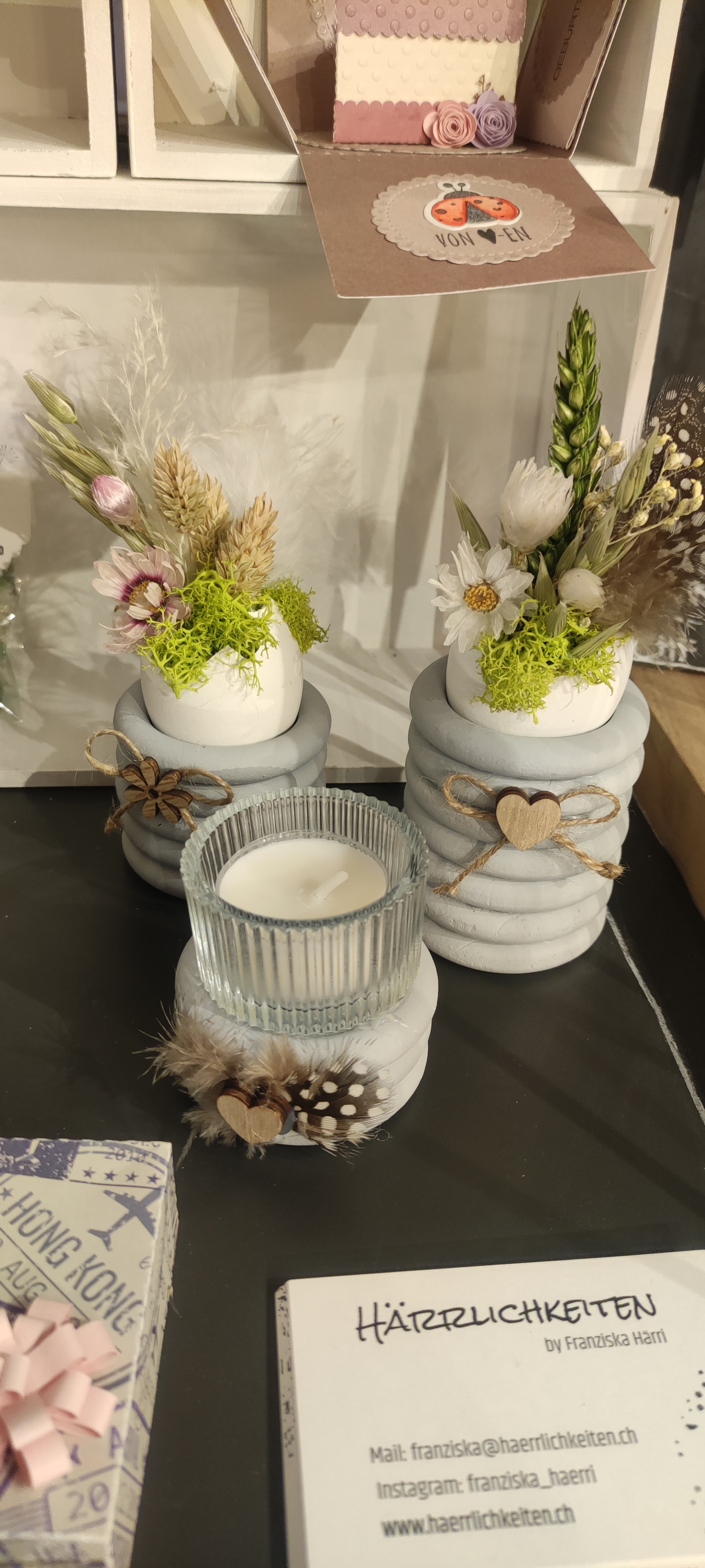 Ein Teil des Sortiments ist auch im 's Fachl St. Gallen im Lindenbühl Trogen und Coiffeur Hair Angels ausgestellt. Auf der Kontaktseite findest Du die aktuellen Ausstellungsorte.